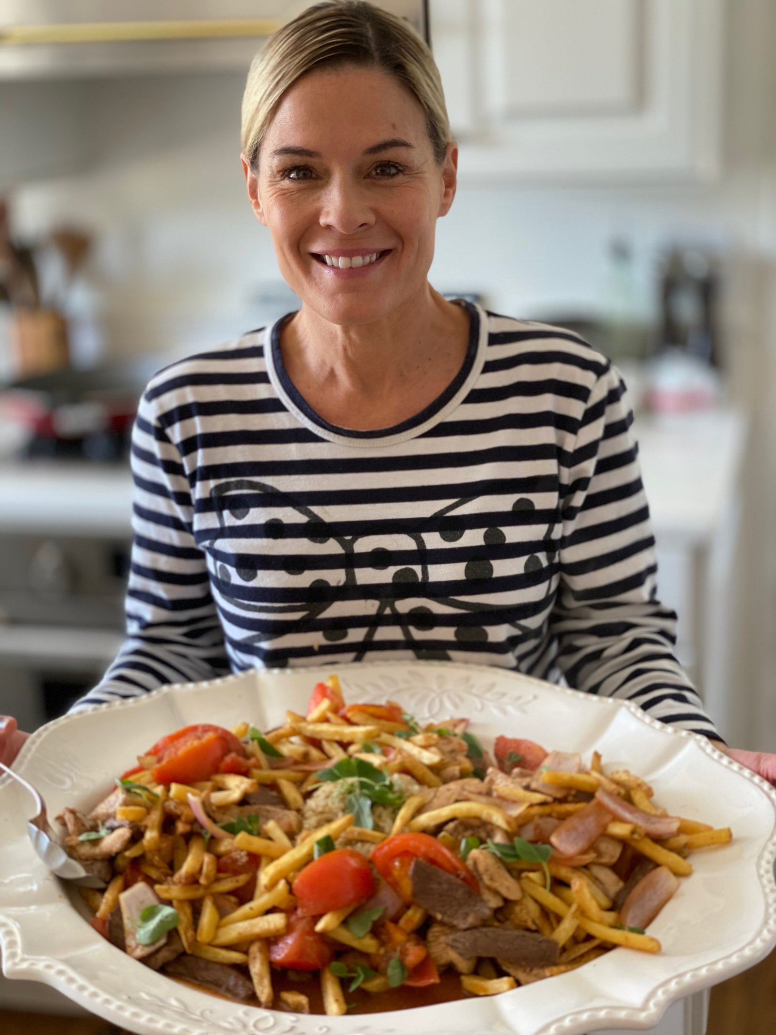 I’m whipping up a classic Peruvian dish called Lomo Saltado to feed the whole family! We’re trying to use whatever we have on hand to make our ingredients stretch right now, so don’t be afraid of substitutions!
